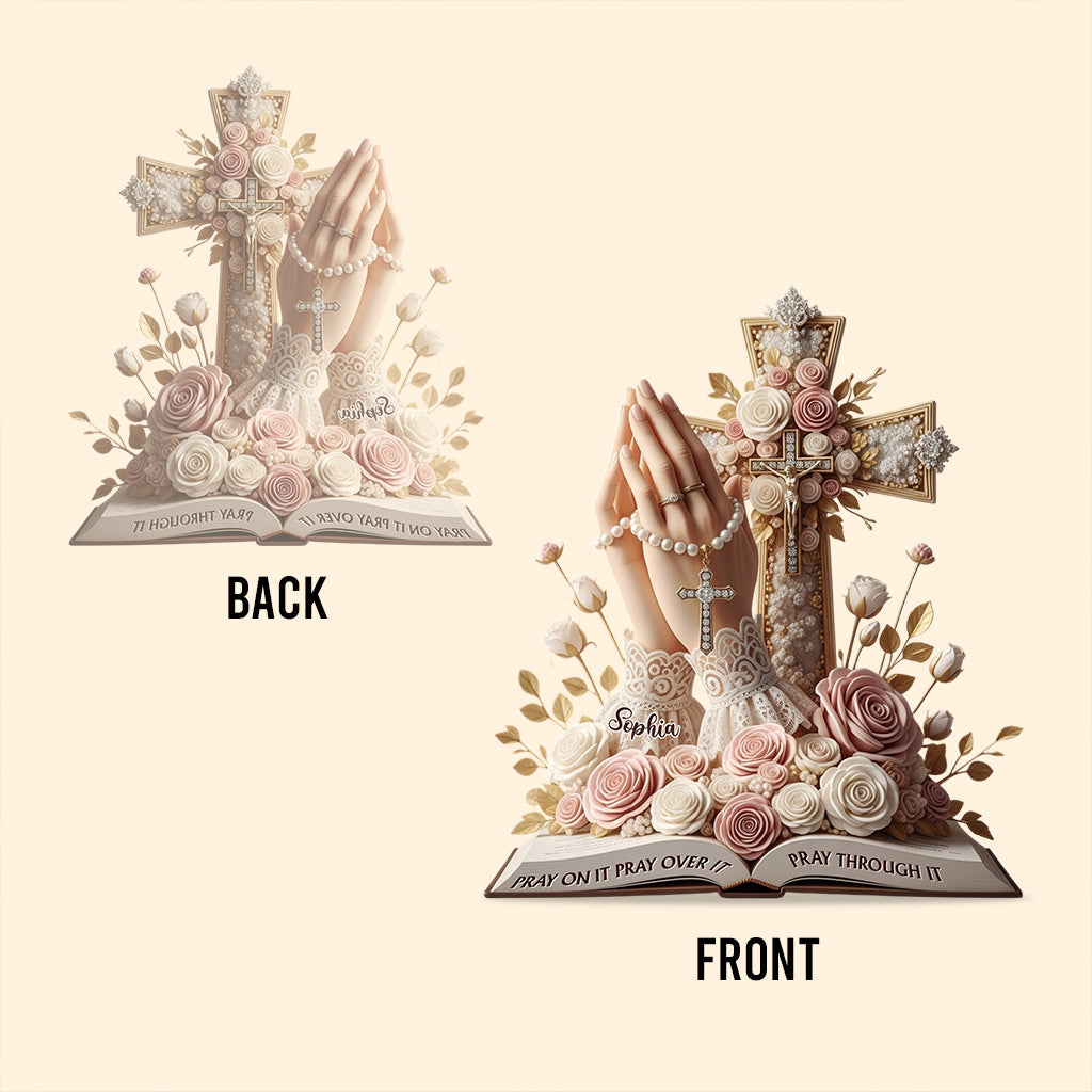 Priez à ce sujet, priez pour cela, priez pendant cette épreuve - Plaque acrylique chrétienne personnalisée en forme de pièce