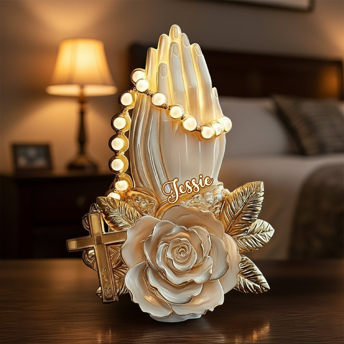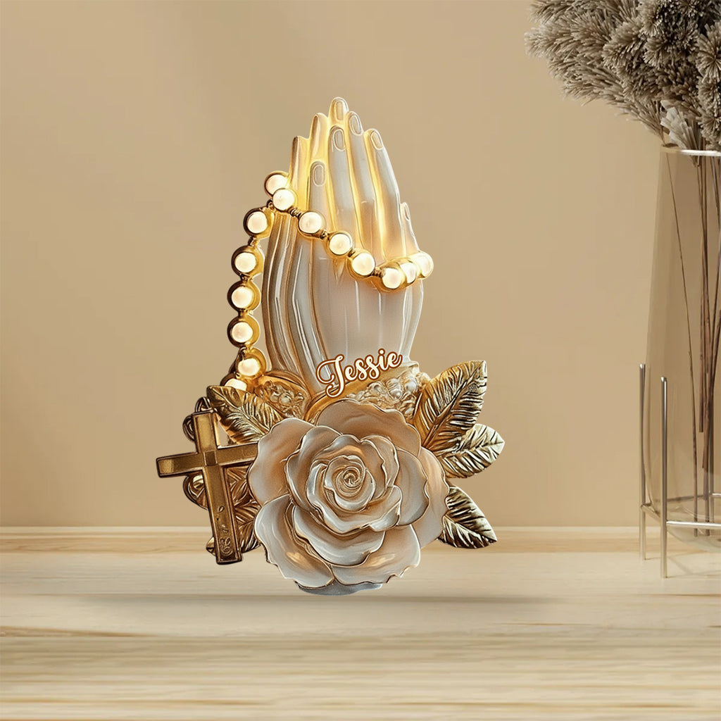 Mains en prière - Plaque acrylique chrétienne personnalisée en forme de main