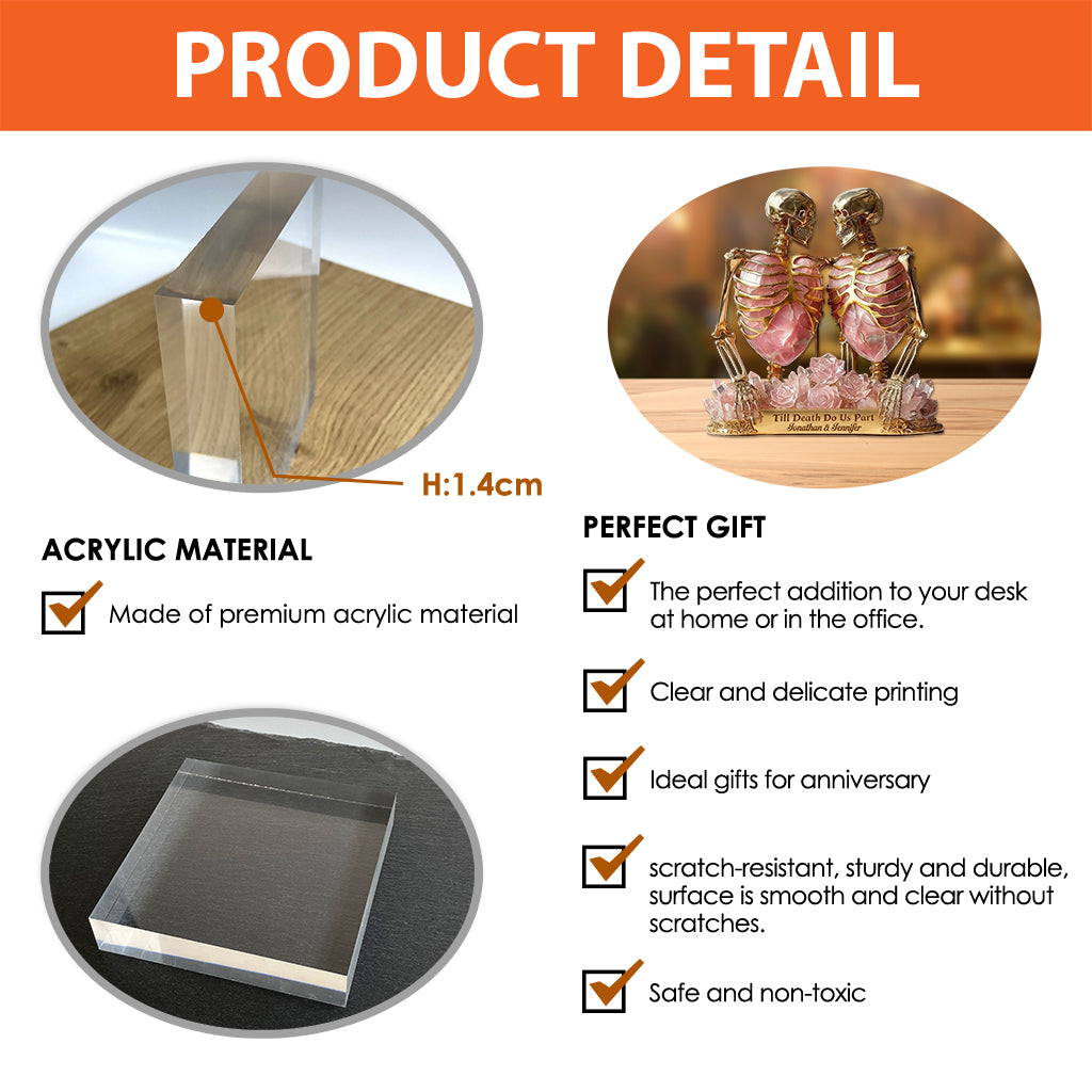 Quartz & Gold Skeleton, Till Death Do Us Part - Personalized Couple Custom Shaped Acrylic Plaque