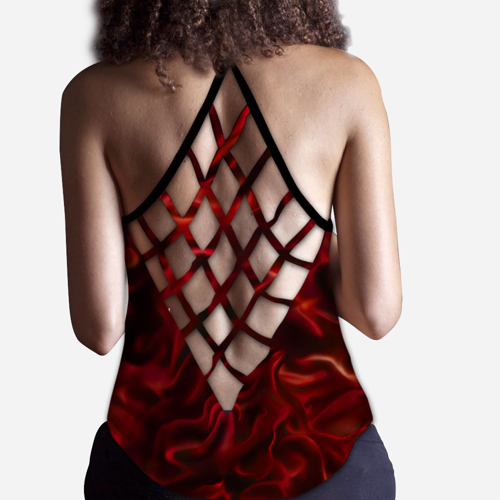 Débardeur croisé : Dos à découpe brute imprimé en treillis