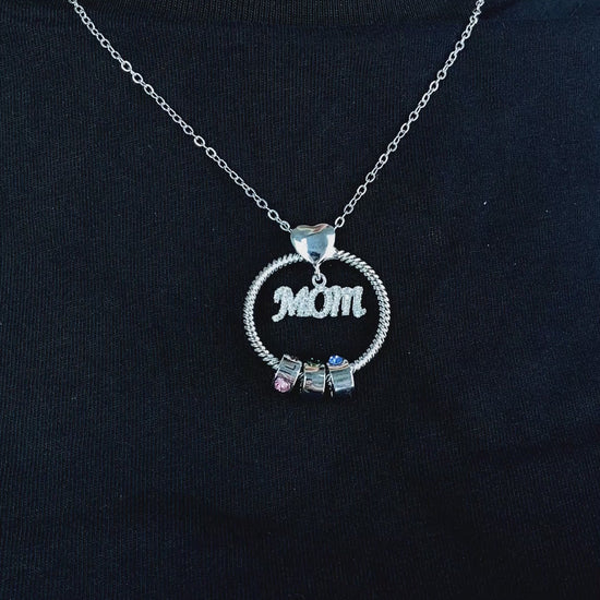 Collier pendentif rond avec breloques pour maman - Collier pendentif rond personnalisé pour maman avec breloques