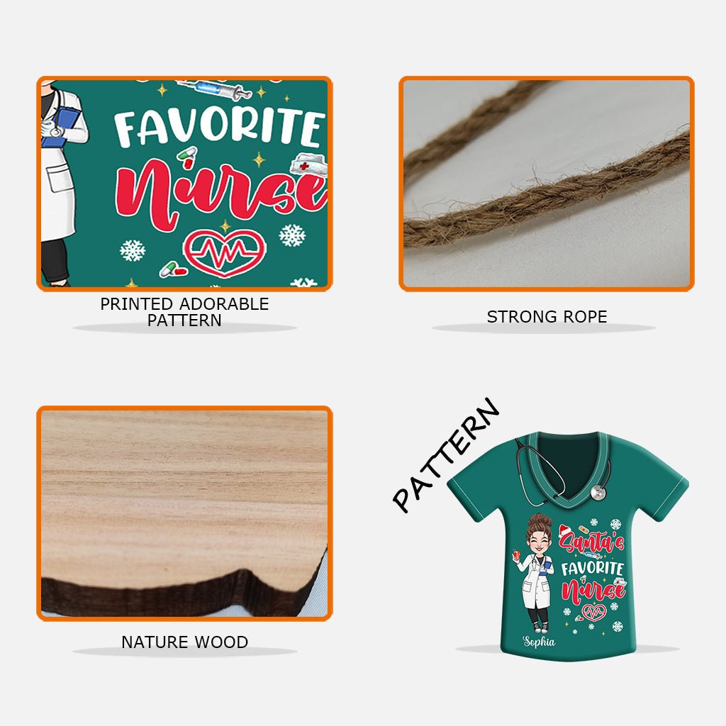Infirmière préférée du Père Noël - Panneau en bois personnalisé en forme d'infirmière