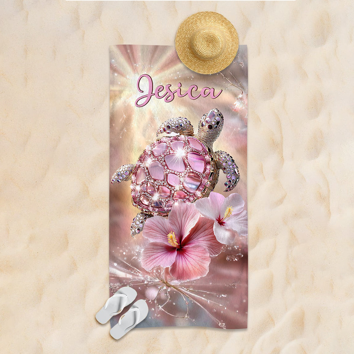 Sentez la mer, sentez la brise - Serviette de plage/de bain personnalisée à séchage rapide avec motif tortue