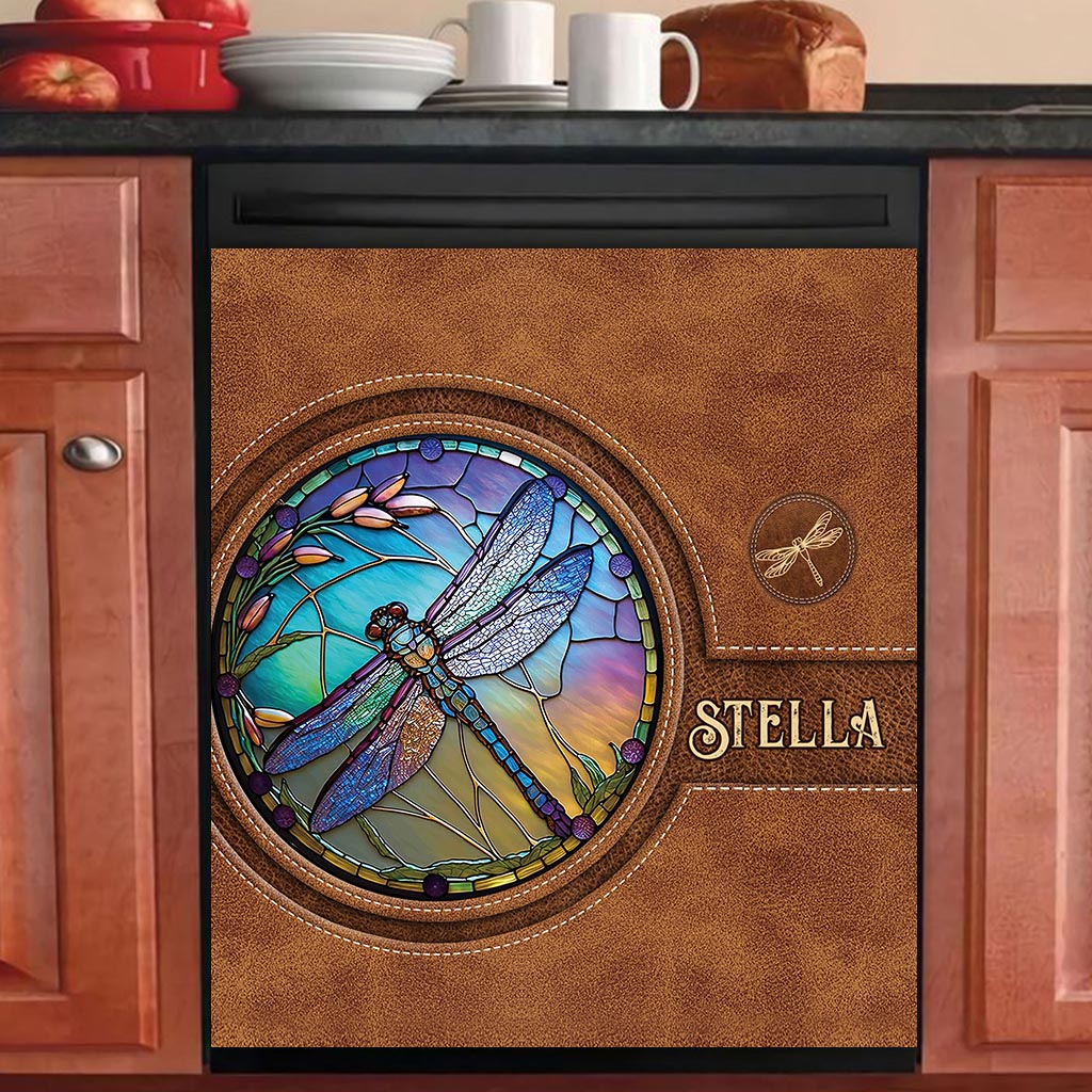Couvercle de lave-vaisselle personnalisé Libellule en vitrail -