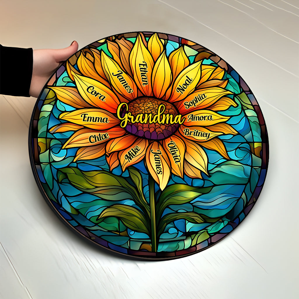 Panneau rond en bois personnalisé « Tournesol en vitrail » - Grand-mère