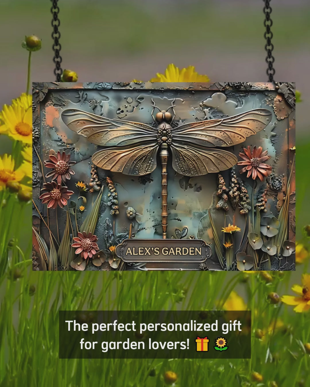 Superbe libellule - Panneau métallique rectangulaire personnalisé pour le jardinage