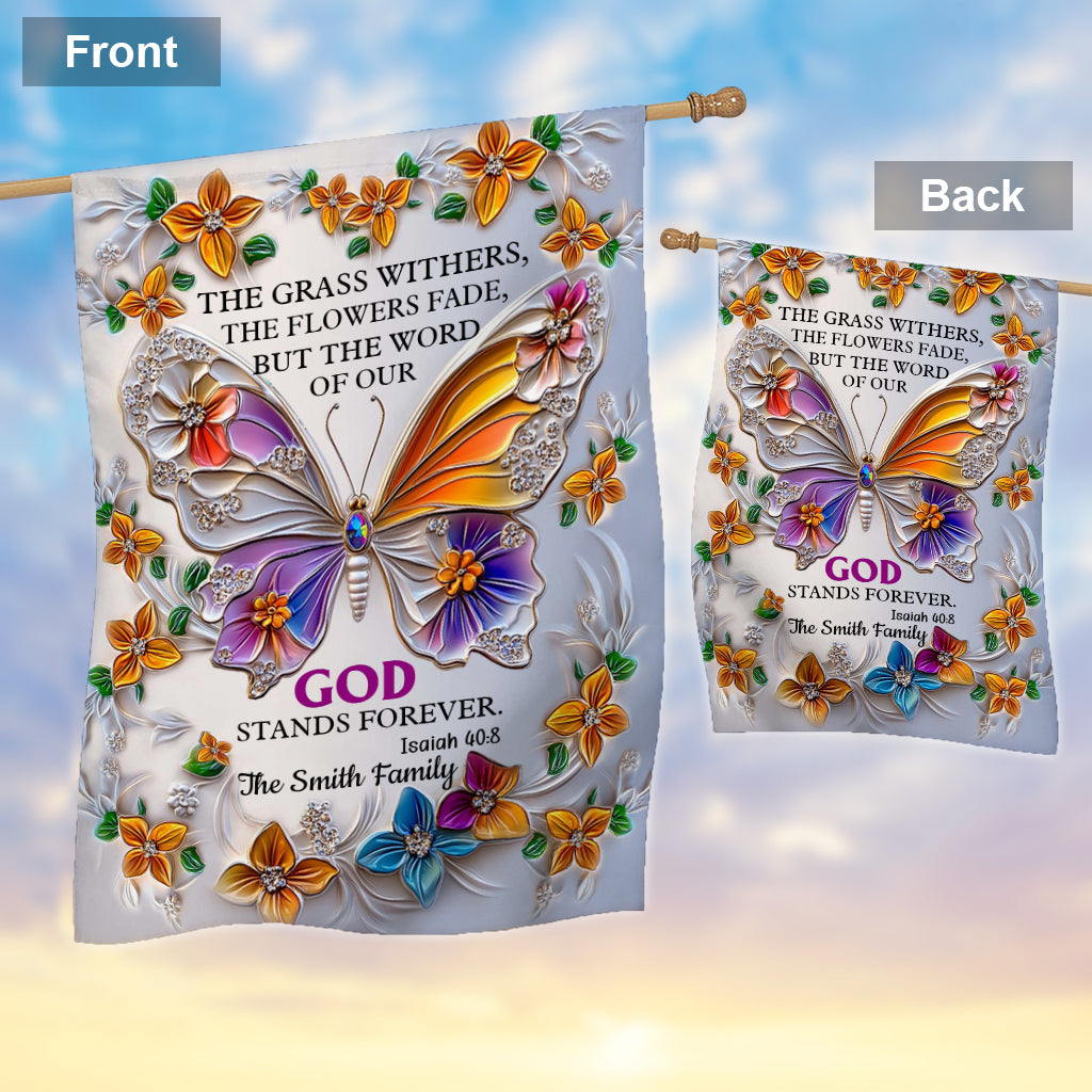 La Parole de notre Dieu demeure éternellement - Fleur - Drapeau de maison chrétien personnalisé