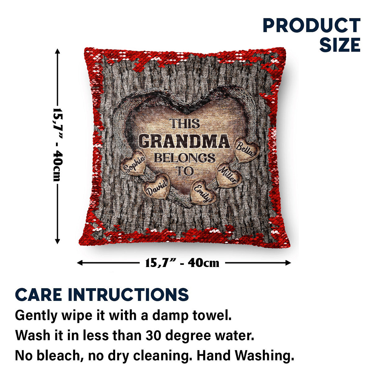 Cette housse de coussin à sequins personnalisée appartient à mamie, maman, Mimi, Nana, Gigi - Cadeau pour mamie