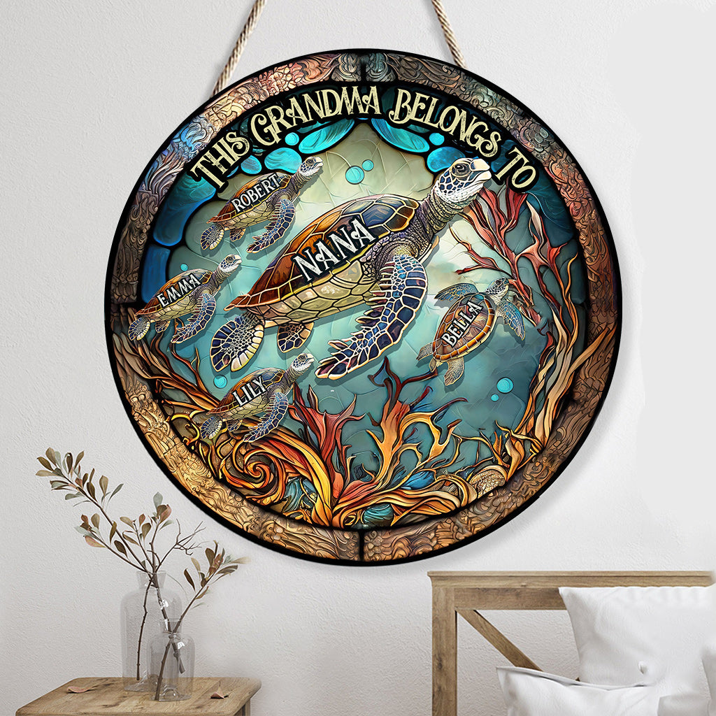 Cette grand-mère/maman appartient à - Panneau rond en bois personnalisé pour grand-mère