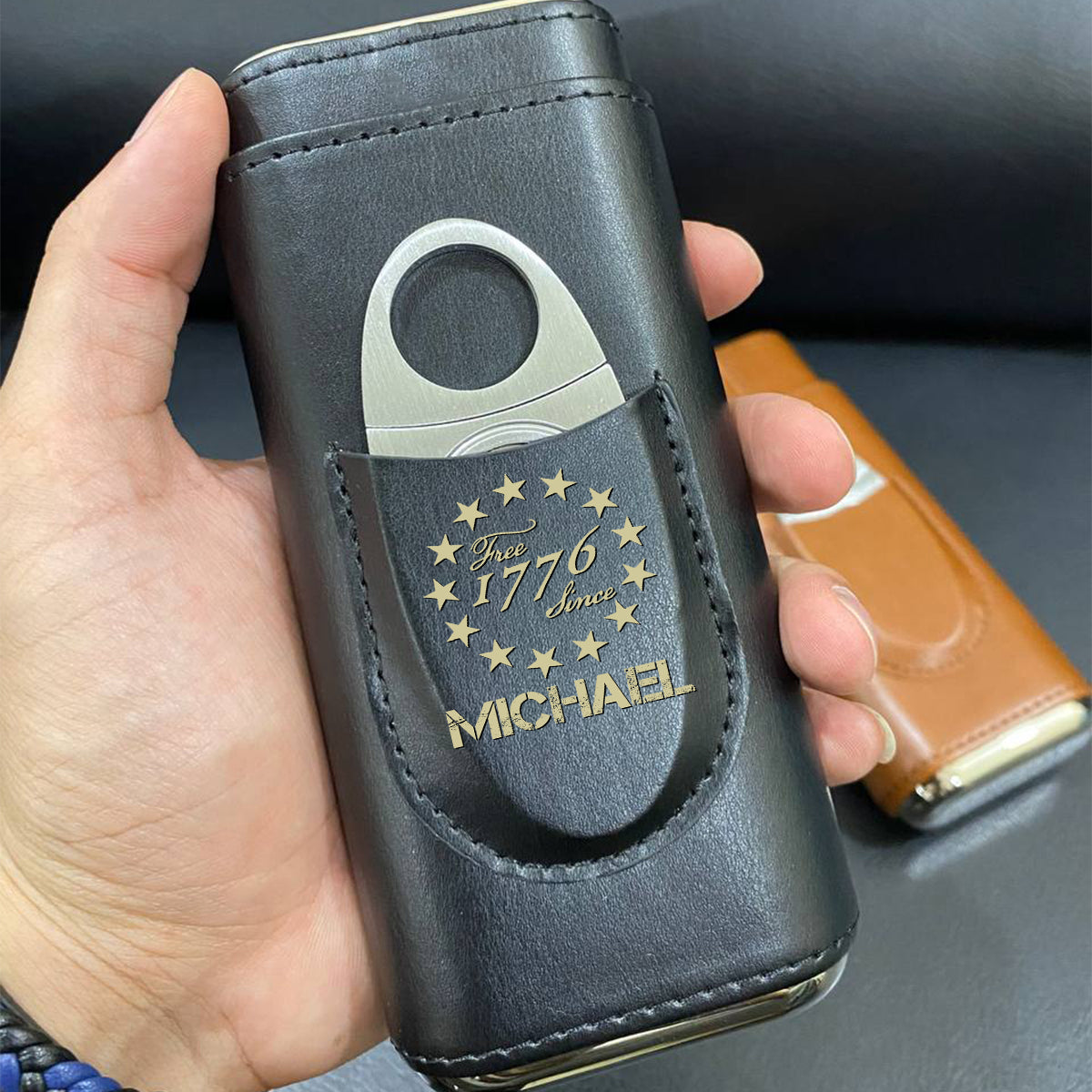 Nous le Peuple - Étui à cigares en cuir personnalisé pour la fête de l'Indépendance/le 4 juillet