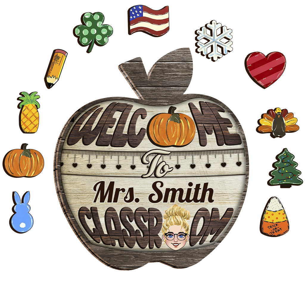 Bienvenue dans ma classe - Panneau en bois interchangeable et personnalisé pour enseignants