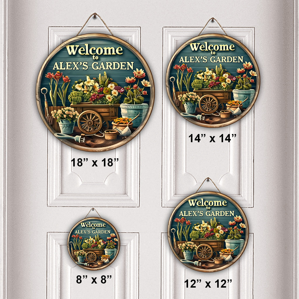 Bienvenue dans mon jardin - Panneau rond en bois personnalisé pour le jardinage