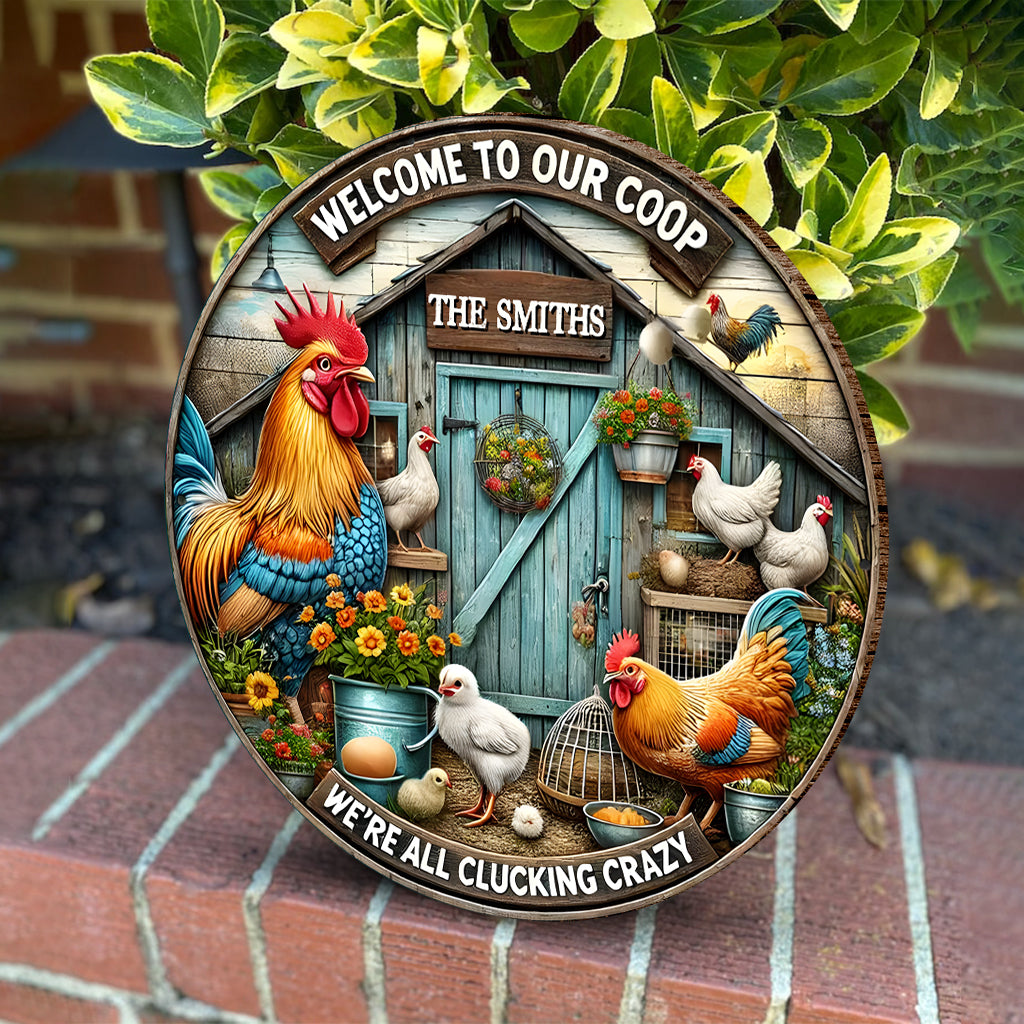 Bienvenue dans notre poulailler - Panneau rond en bois personnalisé pour poules