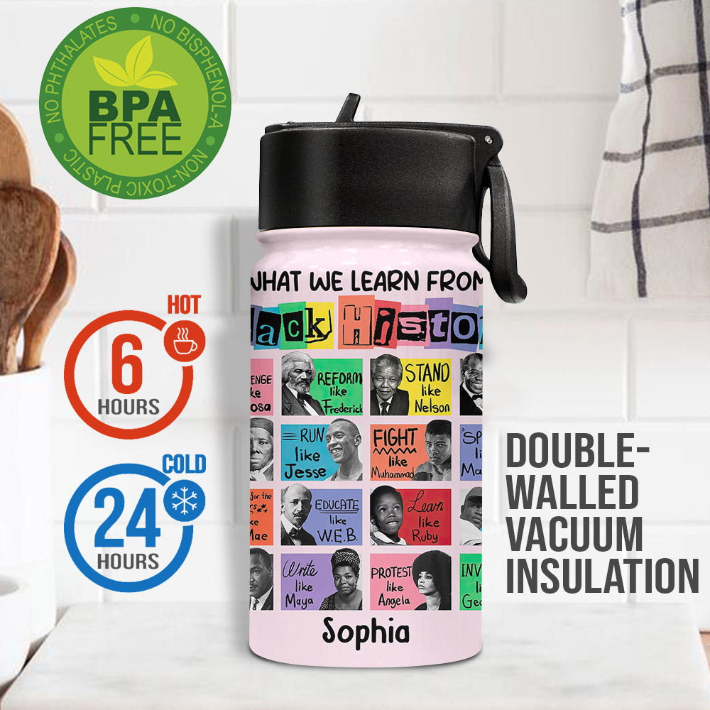 Ce que nous apprenons sur l'histoire des Noirs - Gourde personnalisée pour enfants afro-américains