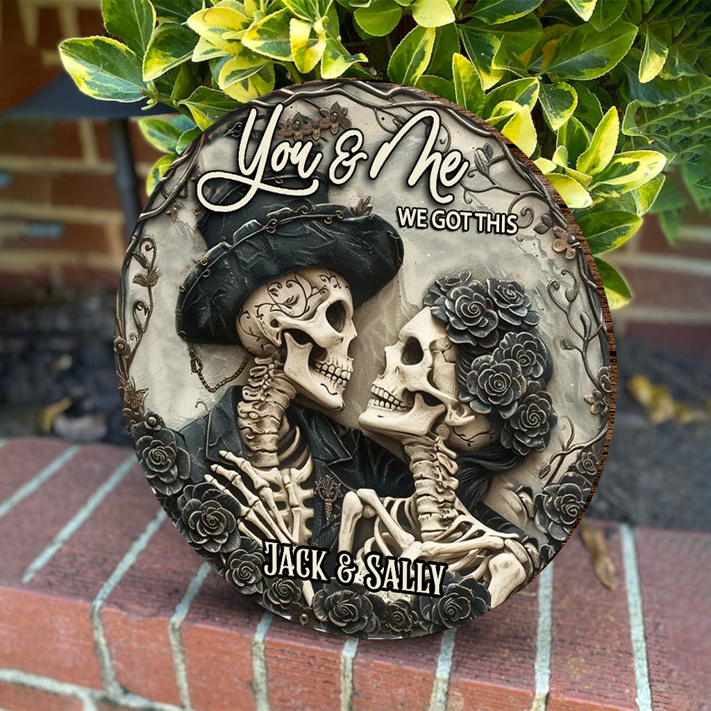 Toi et moi - Panneau rond en bois personnalisé en forme de crâne