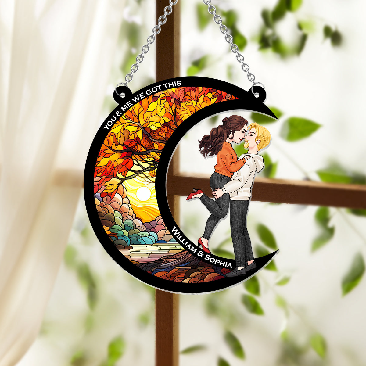Toi et moi, on gère ! - Attrape-soleil décoratif personnalisé pour couple, à suspendre à la fenêtre