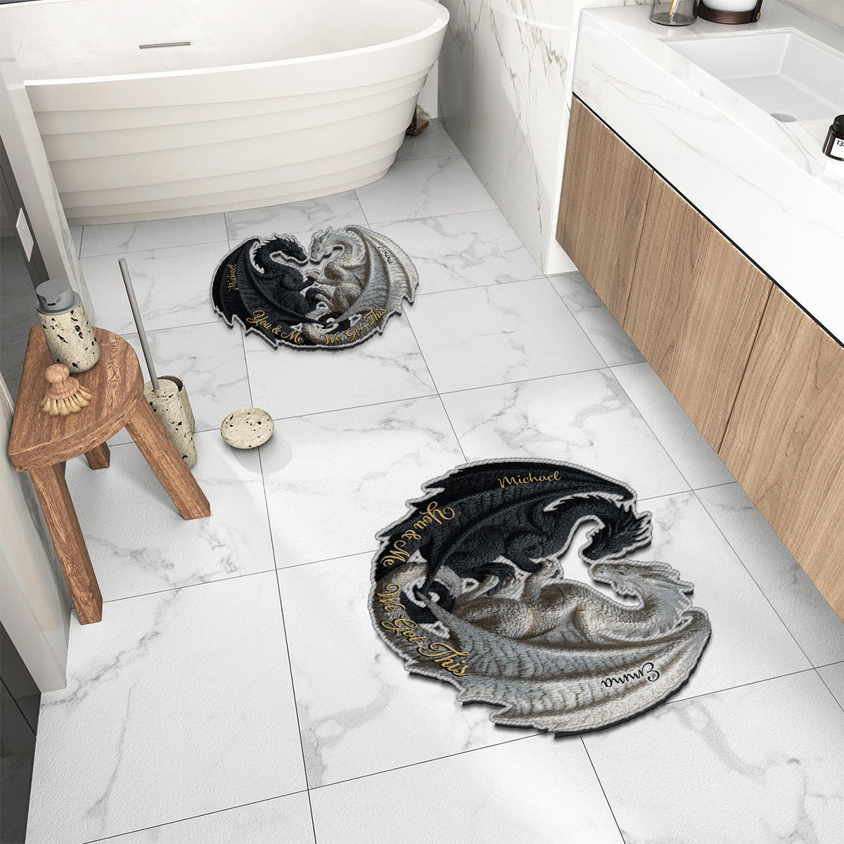 Toi et moi, on gère ! - Tapis touffeté antidérapant personnalisé avec un dragon